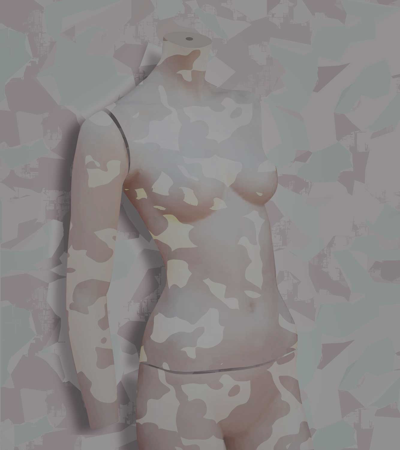 Femme Ersatz investigates the construction of feminine identity within a culture governed by mediated ideals. Through manipulated mannequin forms and hybridized portraiture, the series traces how the female body is manufactured, measured, and standardized within systems of visual consumption.